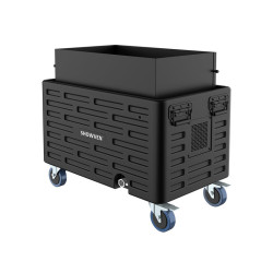 The device is equipped with a DMX control system, a wireless remote control and offers the possibility of adjusting the height and brightness of the artificial flame. It works with purified water as the only consumable, making it safe and economical. The Fake Flame is IP55 rated and features an advanced automatic water filling system, independent ball valve drain hole for inner and outer water tank, water level sensor, Penn Elcom wheels and a robust design for both indoor and outdoor use.