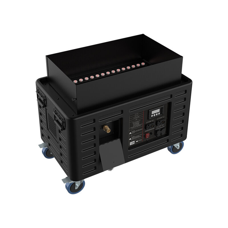 SHOWVEN Fake Flame is a device that simulates the effect of flames produced by a gas machine without using flammable materials, creating a very realistic artificial flame by projecting colored light onto the water mist. It is designed for environments where a realistic flame effect is desired but the use of real flames is not permitted.