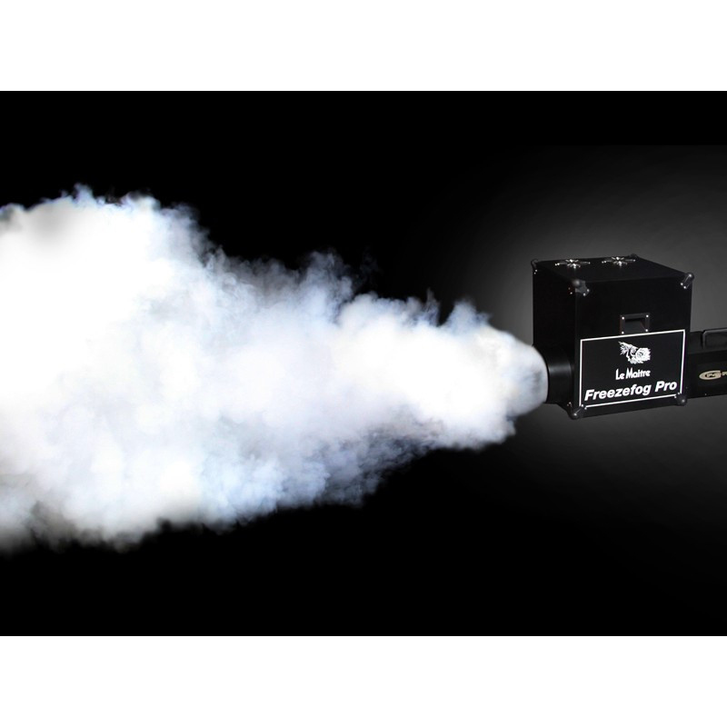 It is really the optimum among systems of its kind, fog and smoke machines, in fact it is the first choice for use in so many different environments, such as concerts, in theaters, showrooms, on stages, television studios, clubs and amusement parks, as well as in sports competitions awards ceremonies. Thanks to the Le Maitre fog fluid, especially formulated for these uses, Freezefog Pro ensures the production of a low fog effect, emphasized and modulated better when used together with a G300, G2 or GF3 fog machine. But, how exactly does it work? It is very simple: the fluid intended to generate the low and dense fog is pumped by the smoke machine into the Freezefog. Here it combines with high or low pressure liquid CO2, coming from a remote gas cylinder. The result, of great visual and emotional impact, is long lasting, is free of residues, is very cold and thus remains low to the ground. Freezefog Pro is able to produce fog with a volume of 41,000 m³/h, it is equipped with a modular fitting for quick connections and disconnections for liquid CO2. It can house liquid CO2, both low and high pressure in one unit. It has the following dimensions 635mm x 490mm x 610mm and weighs 17.5kg.