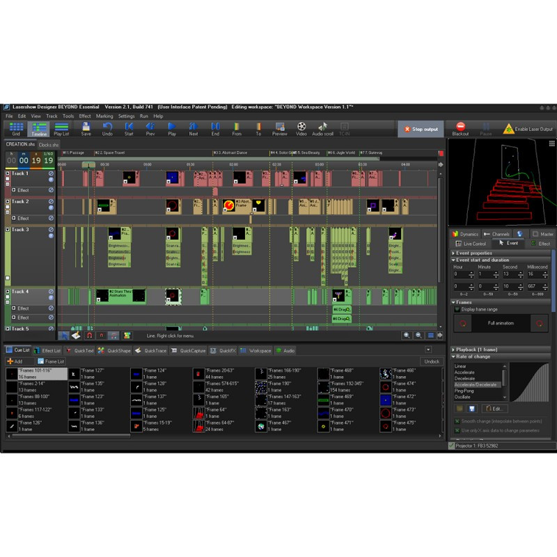 BEYOND Multimedia Timeline vous permet de combiner le laser, la vidéo, l'audio, l'éclairage DMX, et plus encore, le tout en un seul endroit pratique et facile à utiliser. C'est pourquoi BEYOND est largement utilisé dans l'industrie de l'éclairage comme système de contrôle principal pour des spectacles multimédias complets (combinant laser, vidéo, éclairage, audio, pyrotechnie, et plus encore).