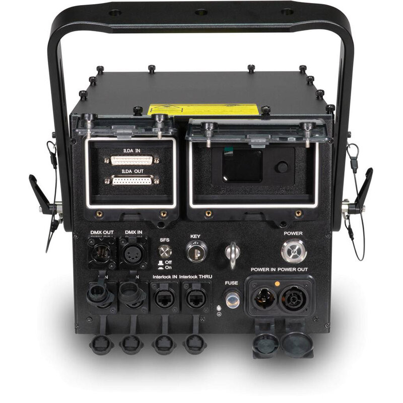 La potenza di uscita garantita è di 5000 mW e le uscite individuali sono 1200 mW / 638 nm (rosso), 1700 mW / 520 nm (verde), 3000 mW / 450 nm (blu). La velocità di scansione è di 45 kpps a 8° e l'angolo di scansione massimo è di 50°.
